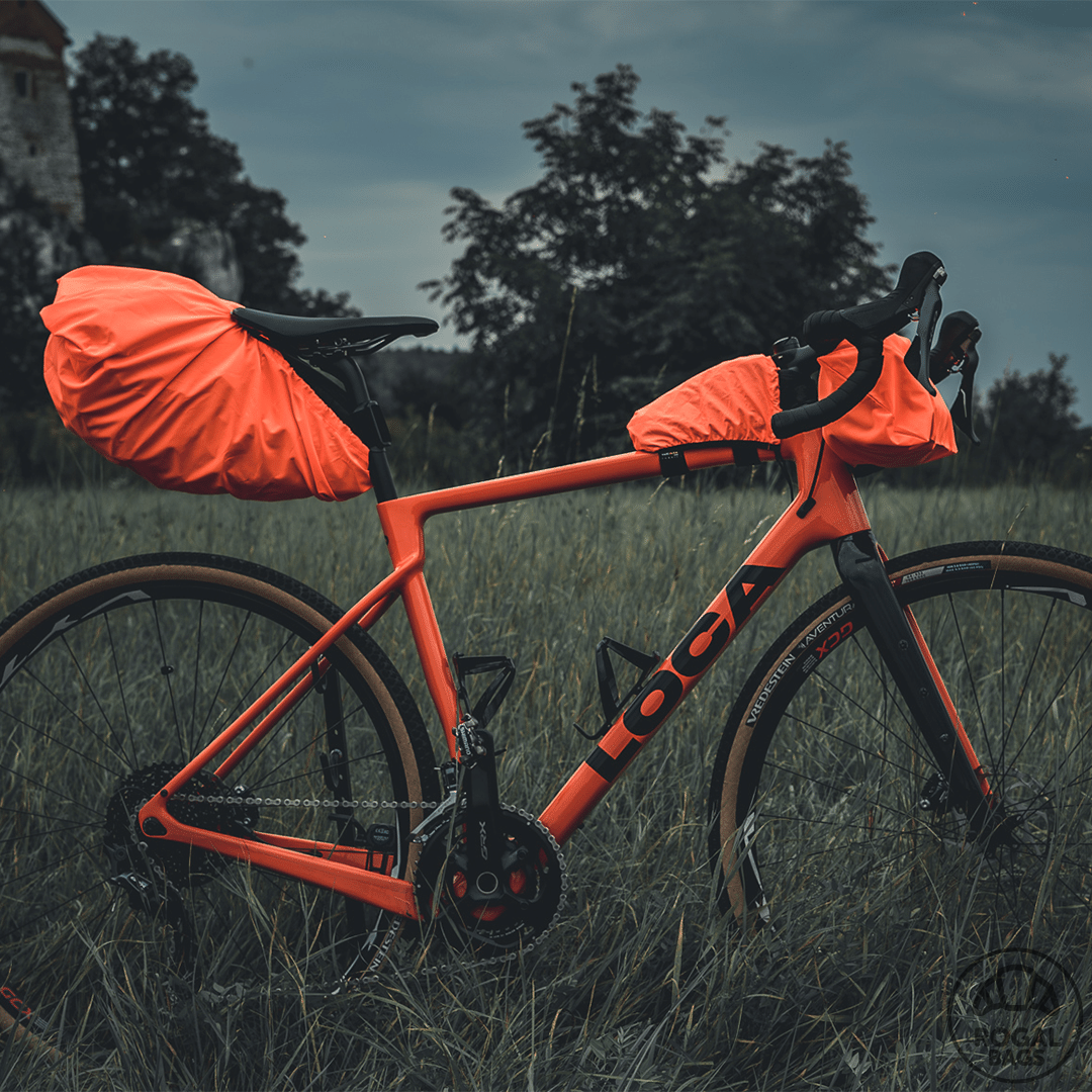 Aby zapewnić maksymalna odporność na warunki atmosferyczne przygotowaliśmy pokrowiec na torbę podsiodłową Bee Bag. Pokrowiec jest wodoodporny, zapobiega przedostawaniu się wody przez takie miejsca jak szwy, szczególnie w miejscu gdzie podczas jazdy woda z koła mocno atakuję spód torby.